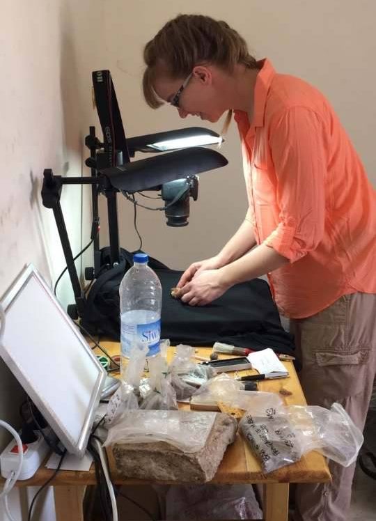 وتقول إيمي ويلسون – إحدى كبار الشخصيات المشرفة على البعثة الإيطالية في موقع كوم الأحمر – “شاركت مع البعثة الإيطالية في كوم الأحمر في عام 2013، وشاركت منذ ذلك الحين في أربعة مواسم من العمل. وفي الموقع، أتخصص في تصوير الأشياء/ الكائنات الدقيقة بتقنية الماكرو (وهي تصوير الأجسام الدقيقة عن قرب لإبراز تفاصيلها بشكل واضح). وخارج الموقع، أساعد في عملية البحث عن تلك الكائنات. وهذا العام، قدمت بعض من أبحاثي أمام إحدى الندوات الخاصة بجمعية دراسة الآثار المصرية”.
