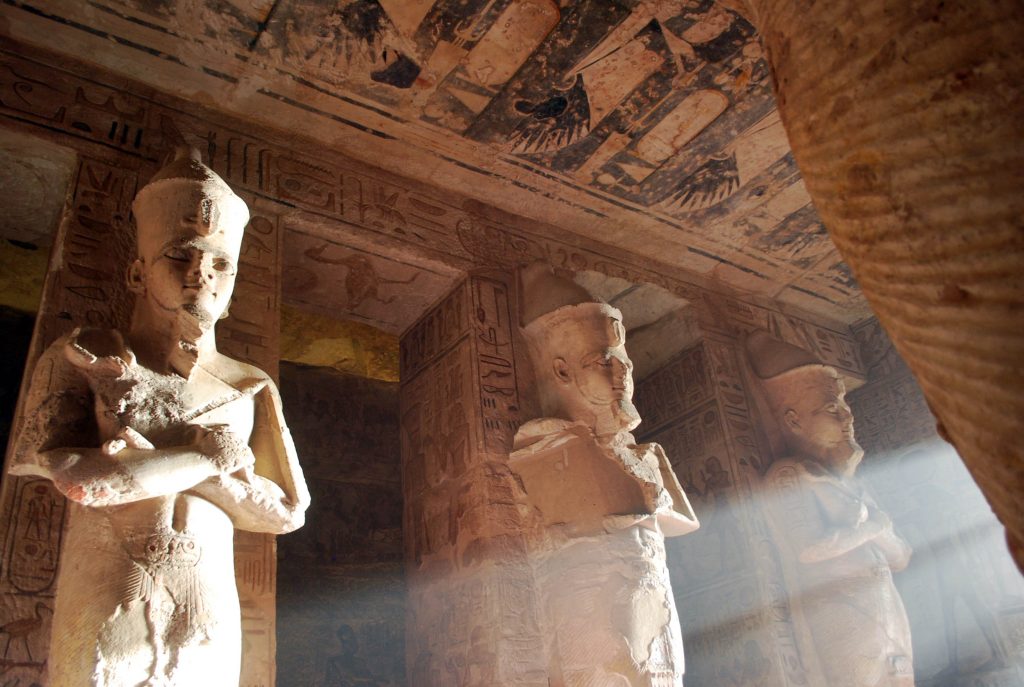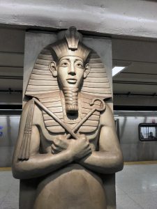تجذب الأعمدة المصرية بطبيعة الحال اهتمامنا. وقد صمم المهندسون أعمدة أوزوريس الموجودة داخل المحطة على جزأين؛ الجزء الأعلى يصور شعارات ملكية والجزء الأسفل يعكس الجسد الملفوف للإله أوزوريس. وتشبه صورة أوزوريس القناع الذهبي الشهير للملك توت عنخ آمون.