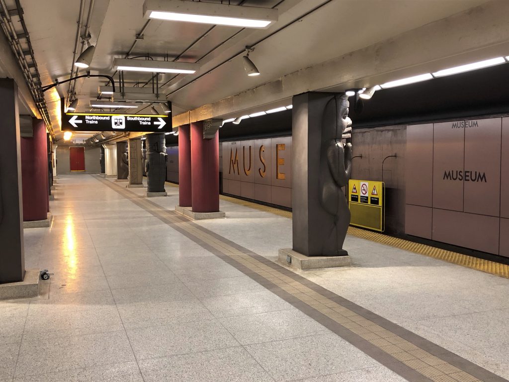 تخفي محطة المتحف، التي تقع على الجانب الشرقي من ممر بلور ستريت الثقافي في تورونتو، الكثير من الكنوز المصرية عن عيون المارة في الشارع. وكان تصميم المحطة في الأساس يشبه الكثير من محطات مترو الأنفاق الأخرى في تورونتو من حيث الألوان البريقة واللافتات التي تحمل اسم المحطات. وكما يشير الاسم، فقد بنيت المحطة للسماح لركاب المترو بزيارة متحف جاردنر للسيراميك أو متحف أونتاريو الملكي. ولكن اليوم، يمكن للركاب الذين يترددون على المحطة التمتع بالنظر إلى الأعمدة التي تم وضعها داخل المحطة المزينة على الطراز الكندي القديم والتي تعكس أيضاً جوانب من الحضارات العريقة في الصين ومصر واليونان والمكسيك.